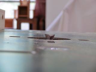吸い付き桟を内側にして、まく板とコーススレッドで固定することにした。電気ドリルはちょっと古いが、インパクトドライバはハイパワーなものだった。