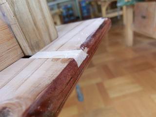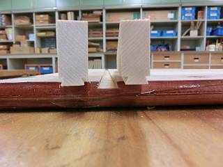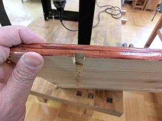 溝が抜けてしまっているので、カバーするために削った材を入れる。
