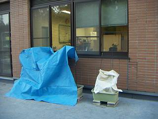 ここ2日ほど霜注意報が出ていたので、日曜日の朝と月曜日の朝は夜明け前に出かけてシートをかけた。