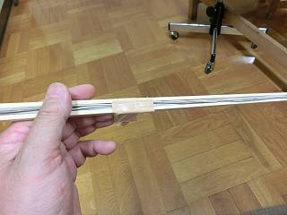 2つ並べた机の端にモールをおいて、真ん中の机へ。