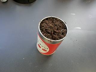 それを缶に戻して種をまいた。さてどんな感じに育つでしょうか。こちらは室内での管理。