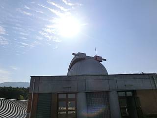 望遠鏡越しにはプロミネンスも観測できた。ピンホール越しもいい教材ができていておもしろかった。