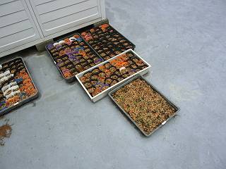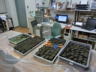 そこで、今日から電気室にならべてしばらく屋内で育てることにした。