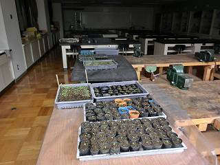 土だけはポットに昼間入れておいたので、夜の技術準備室に苗とポットを運び込む。
