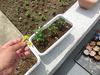 先日、あえなく使われなかった花の苗をどうしようかと考えて、合間を見て少しだけプランターに植えてみた。