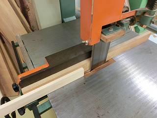 下側は帯のこで半分に縦引きしてから長さを切断。