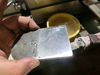 実際にはかなりの時間を使って研いでみた。久しぶりの研ぎでちょっとつかんだものがあった気がしたので、カンナの刃も研いでみた。