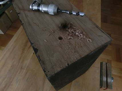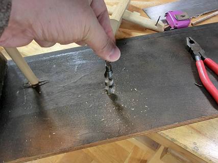 これも御粗末なのは、先端が出たら反対側から穴開けすると言うことをしなかったので、少し割れがでてしまった。