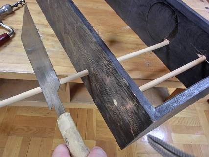 左右の同じ位置に開けて、棒を通す。