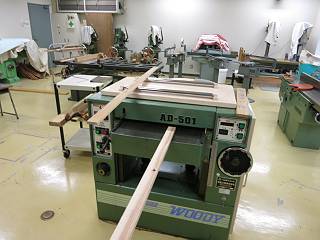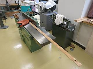 その後、厚さをそろえるために自動かんな盤を使う。これは、学校でも使う。