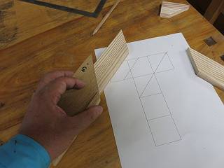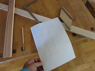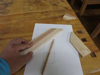 切り落として残った方の材料を再び等倍の設計図に合わせてけがき線を入れる。