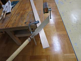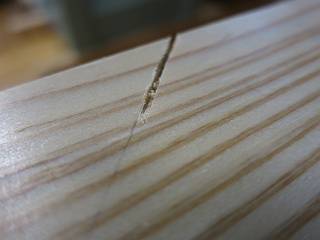今回は、あえて切りしろをとらずに現物あわせで切断。その代わり、のこぎりのあさりを意識して左側の刃がけがき線を半分にするイメージで切る。