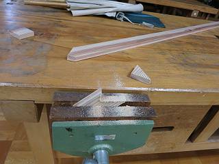 留め定規で45°をけがいて切断。