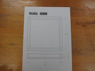 こちらも原寸大で設計図を制作。内側が128mmの正方形になる。