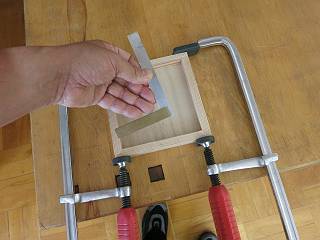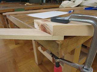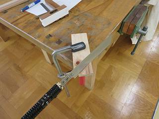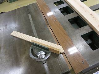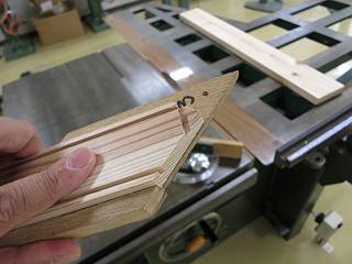 マイタゲージをつかって、ジグを製作。留め定規で45°を正確に出す。