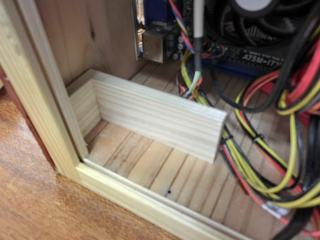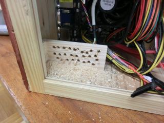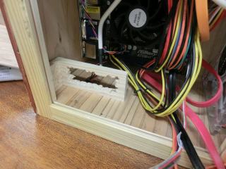 もう一つは、内部の風の通り道を考えて、フロントファンの前に板を置いてハードディスクへ導くことにした。