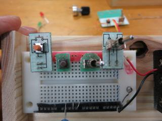 負荷はLEDの他に豆電球と電子ブザー、その他スイッチ4種類と可変抵抗を使うことにする。