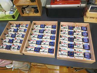 今回は10個を一つの箱に入れることにして、3箱作る。重ねたときにずれないように上下に溝をつけた。
