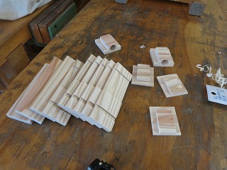 枠を組んだ後,丸いライトが安定するようにフィットする支えを作る。100円ショップで木材の粘土を買ってきた。