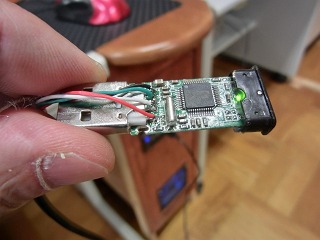 最終的に,このような形ではんだづけ終了。USBポートに刺すと・・・・・