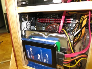 確認後,ネジ止めして完成。一番前の12cmファンで吸い込み真ん中にCPUファン,出口は今回の8cmファンと,上部の電源ファン。