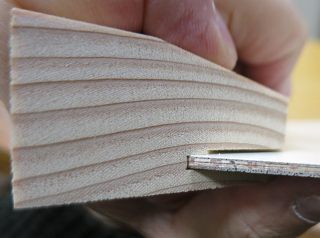 できるだけ加工時間を少なくするために,「留め」の部分も機械で切断。