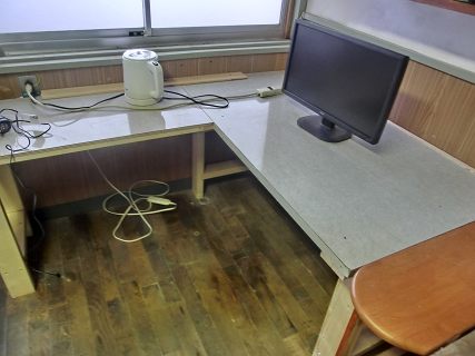 とりあえず戸棚に入っていた部品や工具類を箱に一時保管して奥の倉庫に入れる。(戸棚には普段使うものを入れることにした)