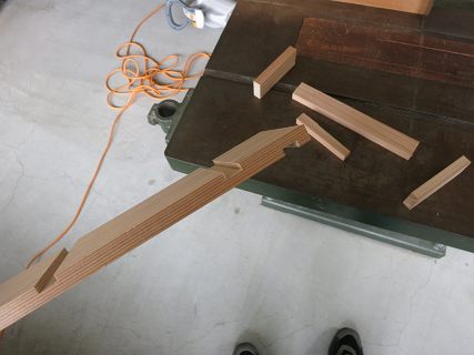 丸ノコで溝をひいて,接着剤でパーツを取り付ける。