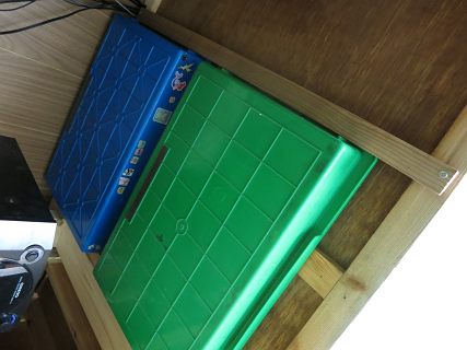 引き出しは卒業生が置いていった教室机用のプラスチックの物を使って,現物あわせで製作。