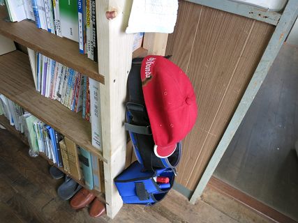 反対側の上にも同じ物を付けた。こちら側はランバーベルトと帽子,上にはタオルホルダーを100円ショップで買って取り付けた。