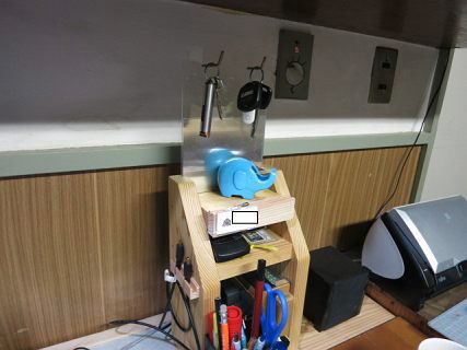 以前サンプルで作った木工製品に名札掛けとUSBケーブルホルダーを取り付けた。