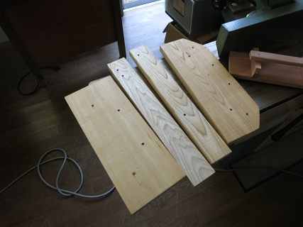 おそらく箱椅子の材料でしょう。今では手に入りにくくなったセン材だけど,まあ,これだけ穴が開いているとちゃんとしたものをつくるには使いにくい。