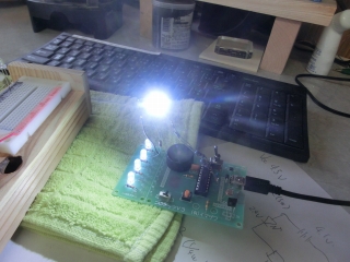 とりあえず、空中配線で作ってみた。結局制限抵抗を13Ωに設定して180mA流れるものが良さそうな感じ。