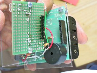 今回はユニバーサル基板にスイッチを取り付けて、後部に延長し裏側はジャンパー線で接続している。