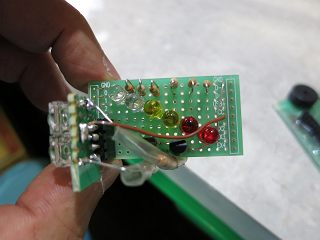 V3の設計時に組み込んであった2つのピンソケットを使って上向きの信号用LEDと前向きの照明用LEDという組み合わせにした。