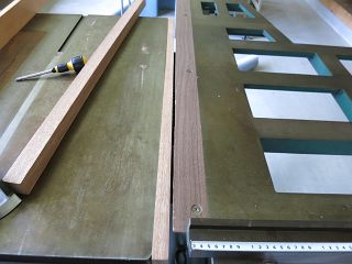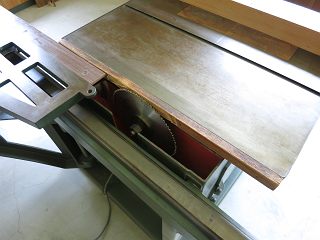 2つあったので、一つはテーブル上にノコ刃を出したときにぎりぎりになるようにして、もう一つは右側を長くして角度を付けたときに使えるようにした。