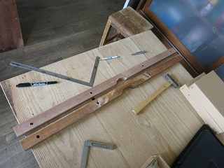 穴の縦位置についてはテーブルからの高さを測り、横の位置は今まで付いていた木と現物あわせで位置決めした。