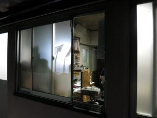 窓を開けたところと閉めたところ。換気用なので全開にはしないと言うことで。