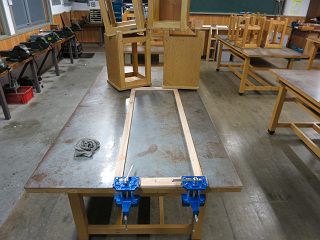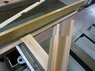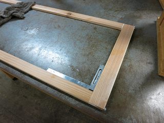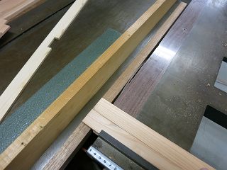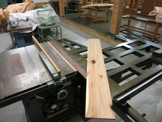 節が多いけれどとってあった薄いスギ板を縦引きして縁にする。