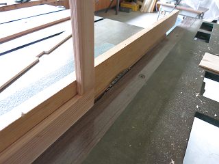 丸ノコを通して、上下に溝を付けて市販の網戸と同じような構造にする。