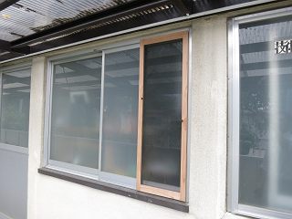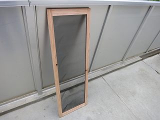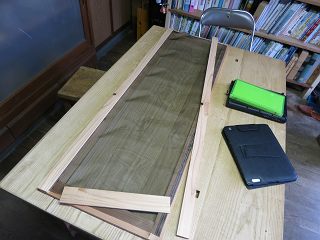 以前、自分の家の裏口に網戸を作ったときの余った網をとってあったので、窓に養生テープで貼ってしのいだけれど、どうせなので網戸を作ることにした。