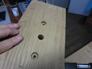 ボルトの頭を逃がすようにショートビットで座ぐりをする。