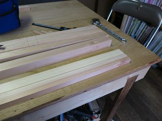 こちらは、角材をつかって折りたたみスタンドにすることにした。