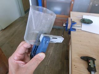 買ってきたのは0.2mm厚の300×200ステンレスメッシュ、560円。まずは折り台と打木で端を折り曲げる。