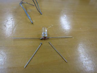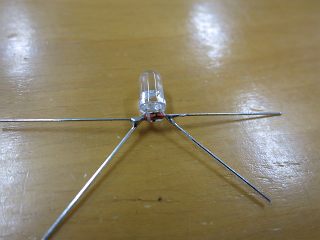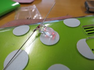 最初は電波の可視化実験装置。といっても、LEDにダイオードをはんだづけするだけ。