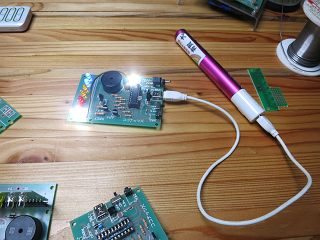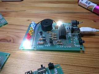 昨日つくったものにPICを取り付けて,点灯させてみた。