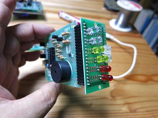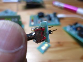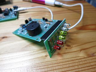 残念ながらLED基板を裏返しにして取り付けるので、LEDのはんだづけが難しい。ここだけを両面基板にするわけにもいかず、こんな形になってしまった。
