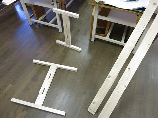 とりあえず、分解状態で木工室へ。高さ調節のできるローラー台は初めて使った。