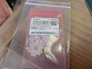5W級のLED、放熱板もついて200円。さすがに高くて使えなかった。さらに専用のレンズもあった。