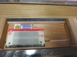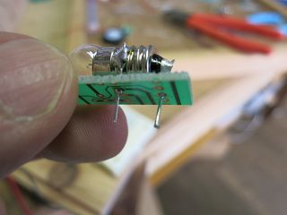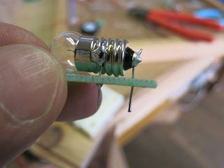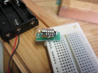 もう一つ変えたのは、豆電球の使い方。余った基板を切って抵抗のリードを切ったものでブレッドボードに安定してセットできるようにした。